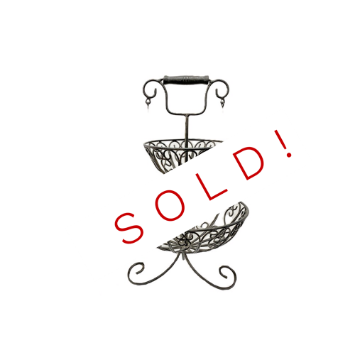 This metal two-tiered display basket features Mediterranean-style scrollwork with open decorative baskets stacked vertically on a central stand. Its compact design saves counter space and is ideal for storing or displaying fruits, vegetables, snacks, or in our case - chocolate! Suitable for everyday kitchen use or for events and buffets.